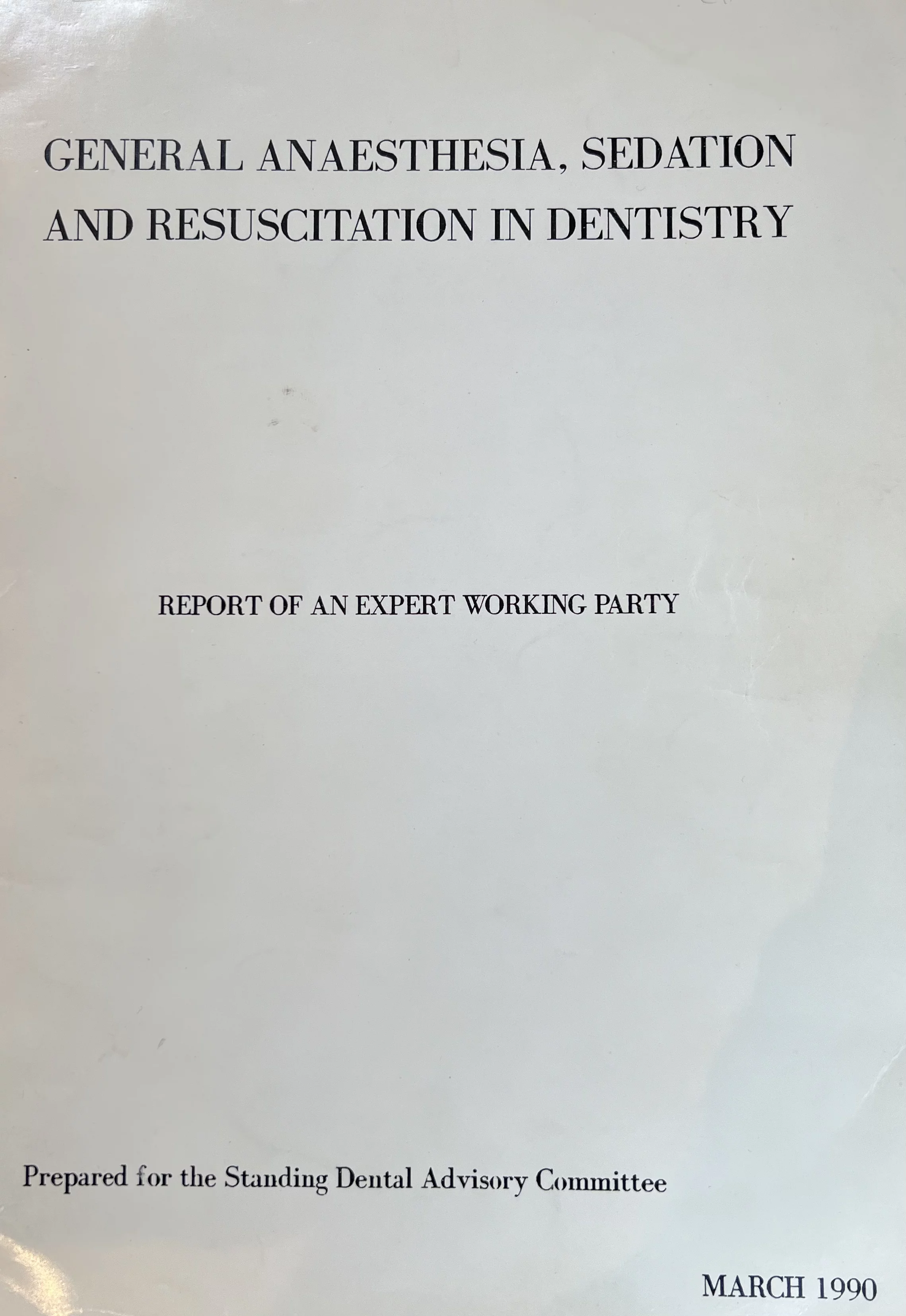General Anaesthesia, Sedation and Resuscitation in Dentistry ('Poswillo')