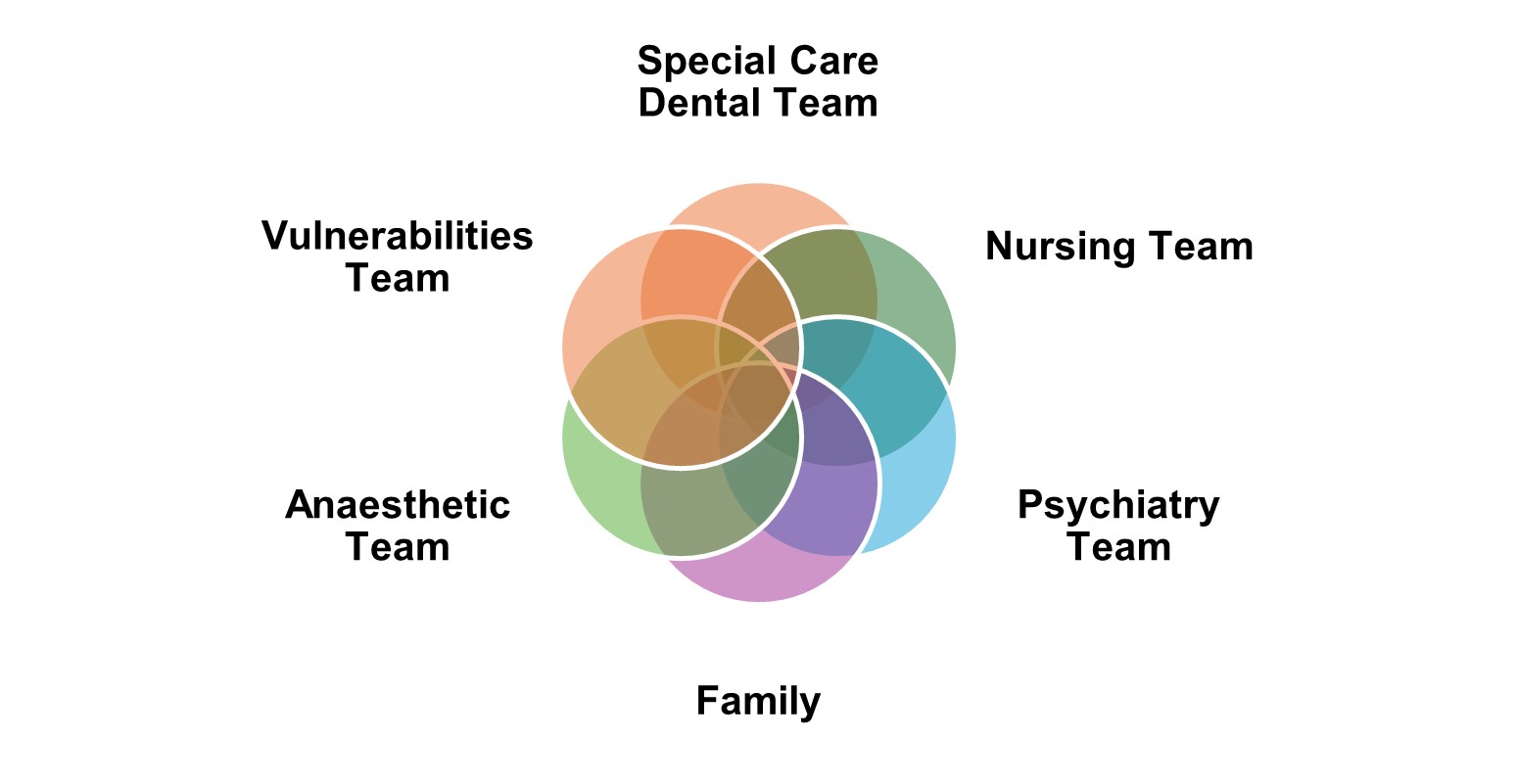 The dental team took a proactive approach to identify and understand the needs of this patient and brought together the right team to achieve a reduction in the barriers and facilitate a successful outcome. Multidisciplinary team (MDT) approach with close co-ordination between medical, dental and mental health teams allowed for safe provision of the dental treatment under GA. The time and planning involved was extremely valuable and essential in the success of this patient’s management and provides a framework for improving healthcare access for future complex cases.