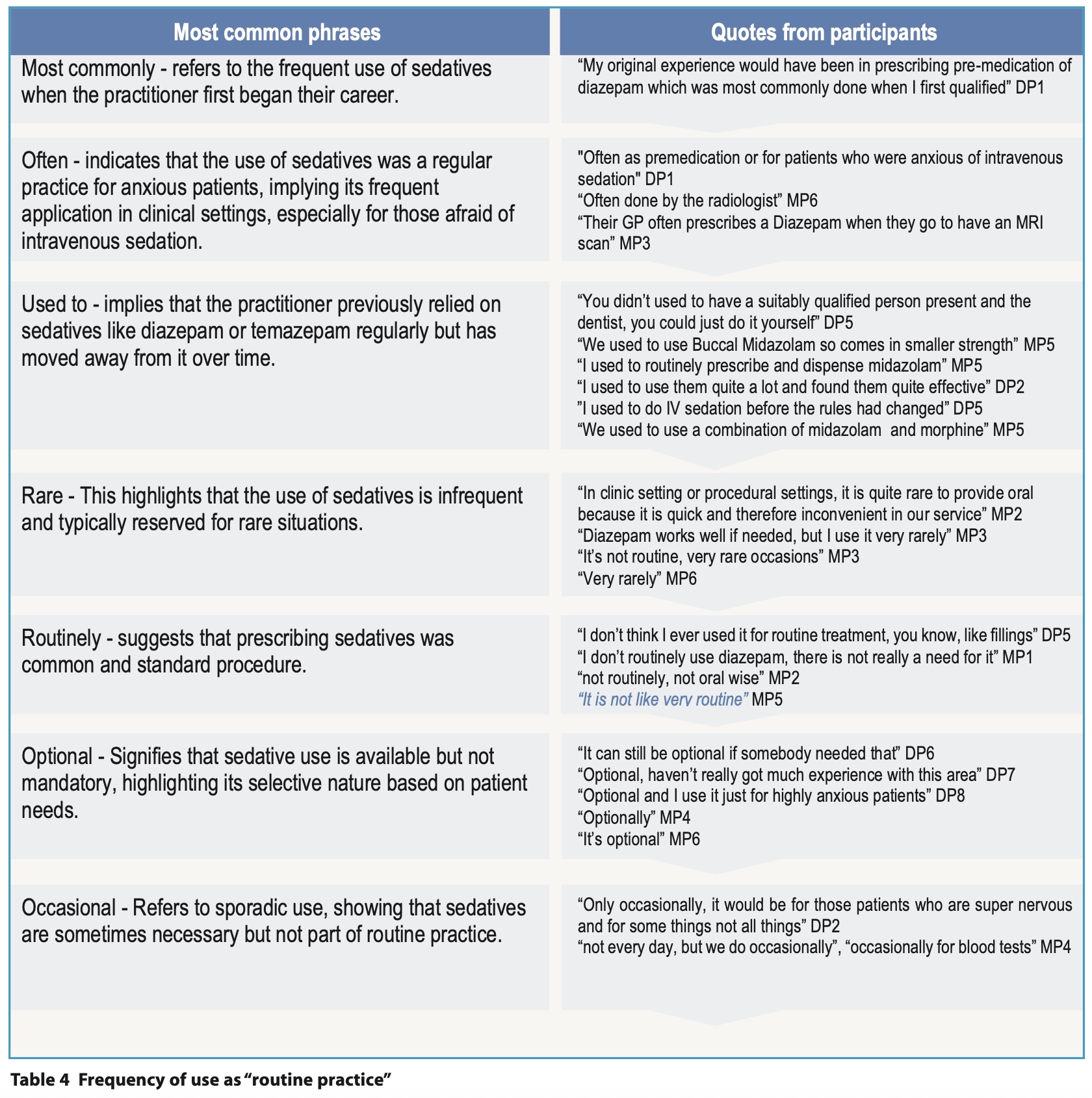 Clinicians also express apprehension due to limited awareness of the benefits and concerns over over-sedation. One participant admitted: ‘A lot of my colleagues (are) apprehensive to prescribe it because I think as dentists, we don’t routinely prescribe lots of things.’ DP6.